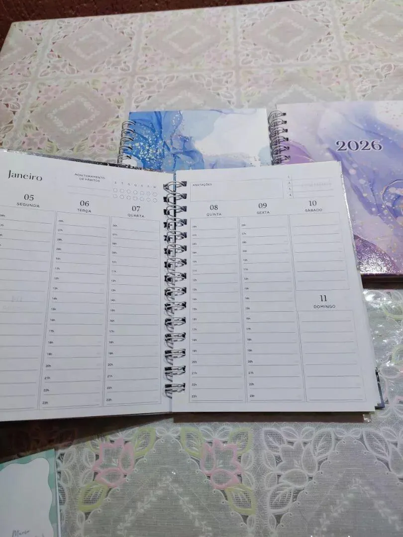 Agenda datada: Um planner anual datado que ajuda você a ter mais foco e organização ao longo do ano, com as datas já marcadas, fica muito mais fácil planejar compromissos, cumprir prazos e acompanhar suas metas com constância.