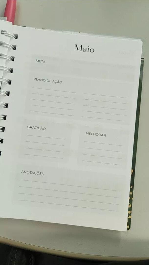 Agenda datada: Um planner anual datado que ajuda você a ter mais foco e organização ao longo do ano, com as datas já marcadas, fica muito mais fácil planejar compromissos, cumprir prazos e acompanhar suas metas com constância.